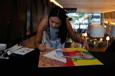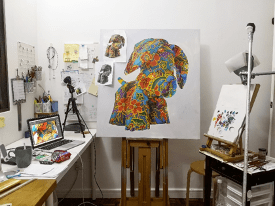 “I spend most of my time working on new paintings, creating new pieces, find inspiration and the motivation each day to show up and work towards the big outcome that I have in mind. It helps keep me focused and in checked on what is important. This is my safe place.“