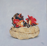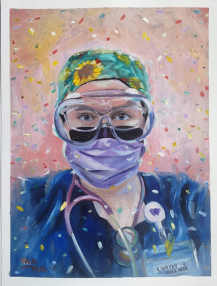 “I kept myself busy in the studio, trying not to think so much about as there is nothing that we can do about it. We video called on that day, as disappointed as we were, we felt thankful that we were still both safe and healthy. For the rest of the day, I tried to make full use of the opportunity and kept focused on what I wanted to achieve. ” (image : Acrylics & Oil with Gold Leaf, “BIG” competition Penang State Art Gallery 2019)